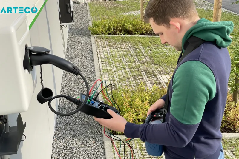 دستگاه اندازهگیری خودرو تأمین شده توسط آرکا راد تجارت برای تسترهای VDE 0100 جهت آزمایش ایستگاههای شارژ (حالت شارژ ۳) خودروهای برقی طراحی شده است. این آداپتور را میتوان با تستر نصب PCE-ITE 55B یا با اکثر تسترهای استاندارد VDE 0100 دیگر استفاده کرد. به لطف LEDهای تشخیص ولتاژ روی ۳ فاز، در صورت وجود خطای نصب میتوان به سرعت آن را تشخیص داد.