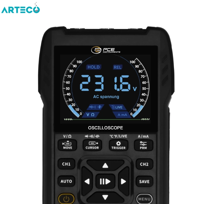 این اسیلوسکوپ دو کاناله ارائه شده در آرکاراد تجارت، پهنای باند 10 مگاهرتز و نرخ نمونه‌برداری 50 میلی‌ثانیه را ارائه می‌دهد که امکان ثبت و تحلیل قابل اعتماد سیگنال‌ها را فراهم می‌کند. چه برای عیب‌یابی مدارها، مشاهده شکل موج‌ها یا تجزیه و تحلیل گذراها، این اسیلوسکوپ نتایج واضح و دقیقی ارائه می‌دهد. به لطف وضوح بالا و عملکرد ساده، حتی منحنی‌های سیگنال پیچیده را نیز می‌توان به راحتی مشاهده کرد. تصویر اسیلوسکوپ را می‌توان به صورت اسکرین‌شات در حافظه داخلی ذخیره کرد و از طریق رابط USB-C به رایانه منتقل کرد.